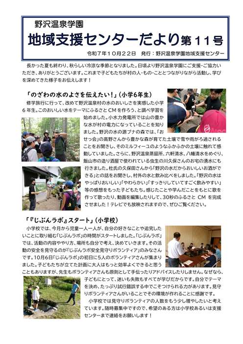 - 野沢温泉学園 地域支援センターだより No11(PDF:734KB)