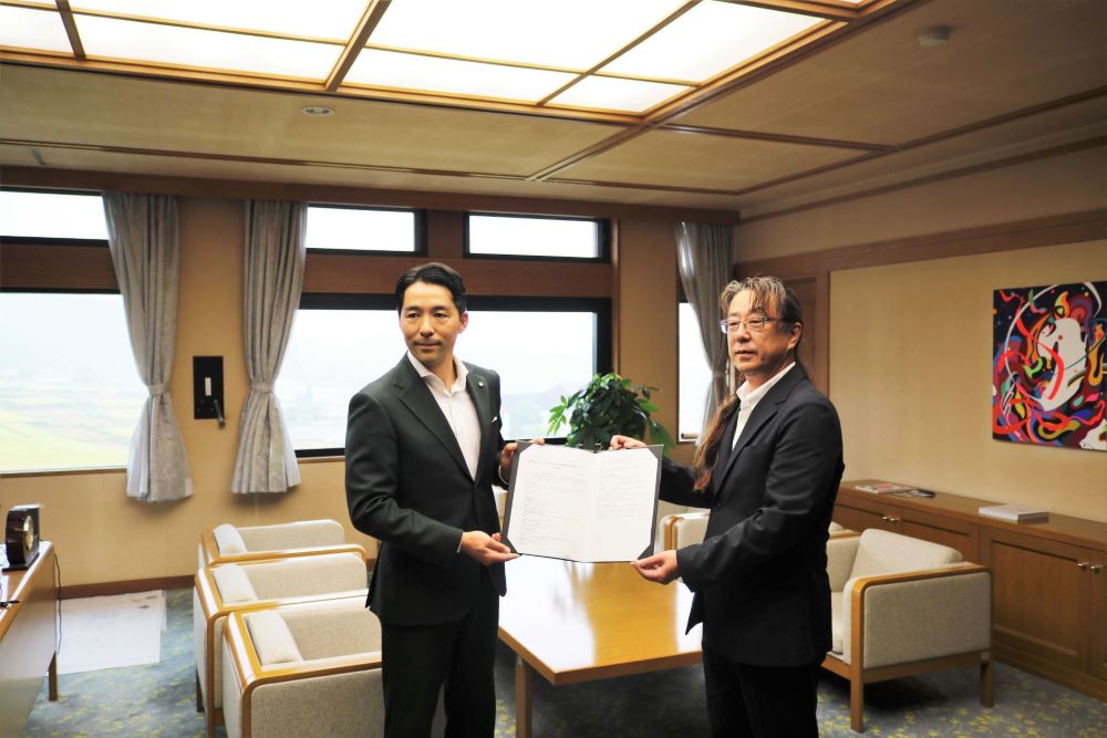 9月18日(木)片桐アキラ副委員長が、9月16日にまとめた「野沢温泉村における観光税・観光振興財源の導入について答申書」を上野雄大村長へ手渡しました。